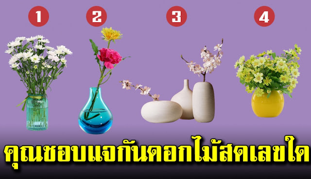 สิ่งที่เห็นในแว๊บแรกของภาพ บอกถึงนิสัยที่ซ่อนอยู่ลึกๆในตัวตนของคุณได้ 1 เห็นต้นไม้ก่อน ถ้าเห็นต้นไม้ ตัวตนของคุณเป็นคนเงียบๆ แต่ไม่ใช่เพราะคุณข ี้อาย คุณก็แค่มีความเป็ นตัวของตัวเองสูง และรู้สึกว่า ไม่จำเป็นต้องทำตัวให้เป็ นที่ยอมรับของใครๆ พอใจที่จะอยู่อย่ างสบายใจมากกว่า 2 เห็นลิงกอริลล่าก่อน คุณเป็นคนที่กระตือรือร้น ทะเยอทะย าน ชอบความสมบูรณ์แบบ เป็นคนที่หากจะทุ่ม ก็ทุ่มเทไปสุดกำลัง คุณมีเป้าหมายในใจ และชอบที่จะพุ่งตรงไปข้างหน้าเสมอ จนบางครั้ง ก็เผลอละเลยคนรอบข้างไปบ้าง สิ่งที่คุณควรเพิ่มอีกนิด คือ ความใส่ใจ 3 เห็นสิงโตก่อน คุณเป็นคนที่มีลักษณ ะนิสัยที่เด่นชัด คุณรู้ว่าตัวเองเป็นคนอย่ างไร ชอบหรือไม่ชอบสิ่งไหน คุณเข้าใจความต้องก ารของตัวเองอย่ างดี และมักจะไม่ยอมให้ใคร หรืออะไร มาบั่นทอนตัวตนของคุณ 4 เห็นปลาก่อน คุณเป็นคนอ่อนโยน และอ่อนไหว ลักษณะเด่น คือ เป็นคนที่แคร์ และเข้าใจคนอื่น คุณพึงพอใจที่ได้เป็ นที่พึ่งของใครต่อใคร ชอบให้ความช่วยเหลือ สิ่งเดียวที่ควรระวัง คือ อย่ ายอมให้ใครเข้าม าเอาเปรียบคุณจนเกินไป ขอขอบคุณที่มา tainisai, verrysmilejung